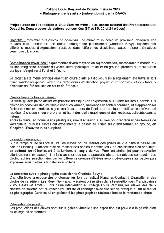Projet Dialogue entre les arts : "Je suis un arbre"