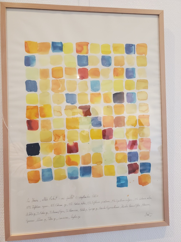Aquarelle : "Isochromes" (à partir de tableaux d'analyse de laboratoire de différents pollens)