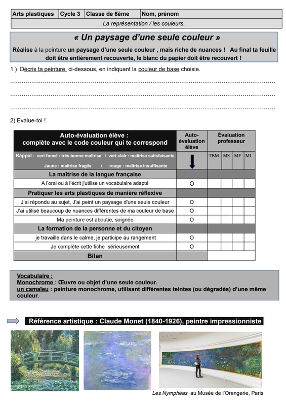 La fiche de cours et les références artistiques